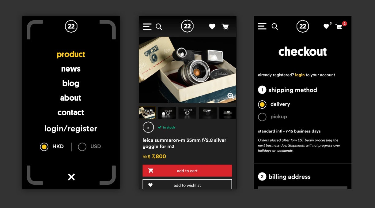 Alongside redesigning their brand website, f22 foto space. We also crafted the user interface and user experience for f22. To keep in line with the branding, we designed a cutting-edge and stylish website, creating an overall brand identity and providing a quick and easy user experience whilst exploring the site. Alongside the website, we also developed an ecommerce store that sells their cameras, lenses and accessories, designing a modern and clear product listing page along with the product pages and a shopping cart function. To support the online store, we developed the CMS system to support it.