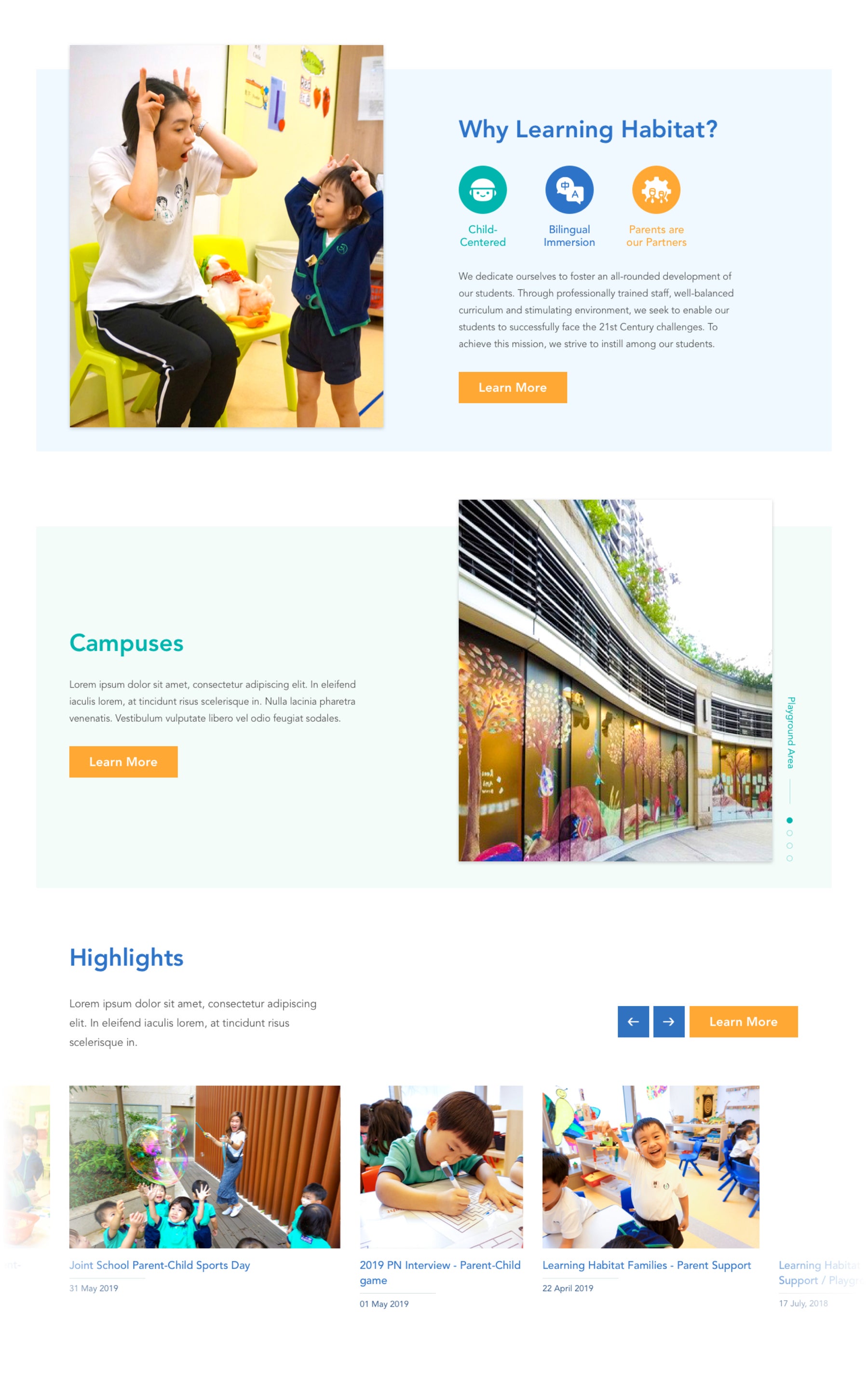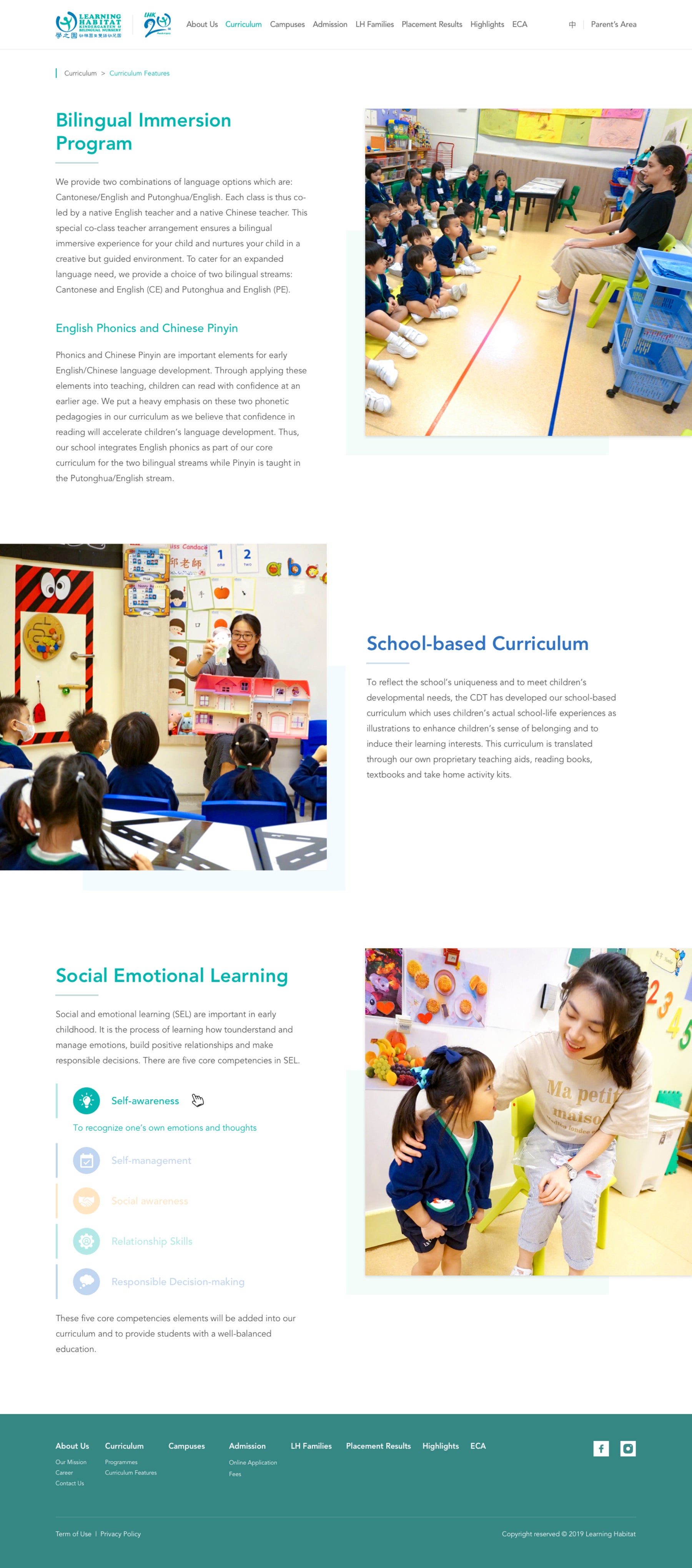 FLIPS Digital has created a user-friendly website for parents and educators. They can easily visualize how children learn and grow in Learning Habitat's educational environment. By creating an easily navigable UX Design, parents can quickly and clearly find important information without any issue, ensuring ease-of-use for the site. The website also contains an easy-to-use form that is highlighted via a call-to-action that encourages parents to enrol their children into Learning Habitat's program. Overall, our work is able to showcase the very best aspects of this institution and promotes the benefits of having their children go through the great programs provided by Learning Habitat.